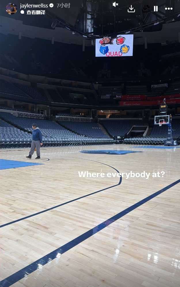 不过搞笑的是,灰熊球员韦尔斯照常来到了球馆,看着空空如也的球馆,他更新动态写道:“大家都去哪儿了?”